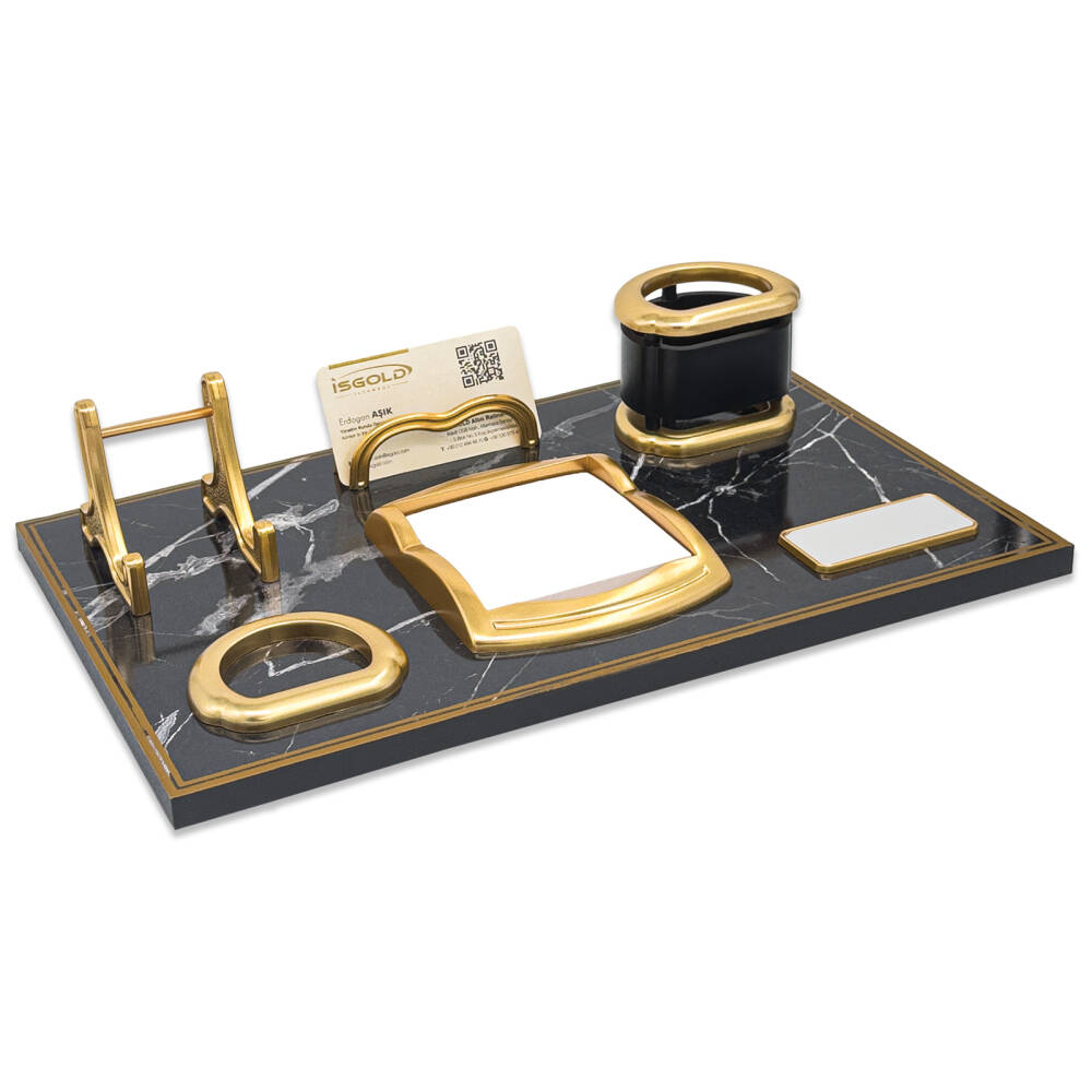 ASİL SİYAH-ALTIN MERMER DESENLİ MASA SETİ