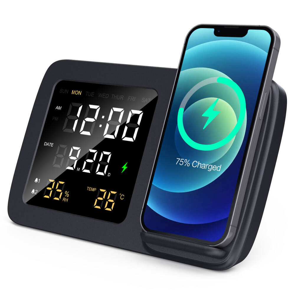 *Kablosuz Şarj *Kablosuz Şarj Çıkışı: 15W *Dijital Takvim, Dijital Saat *Çalar Saat, Erteleme Modu *Sıcaklık Derecesi, Nem Göstergesi *Type-C Şarj Kablosu *Baskı: Lazer