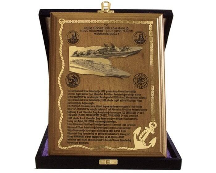Deniz Kuvvetleri Komutanlığı Ahşap Plaket Özel Üretim Süet Kutulu - 1