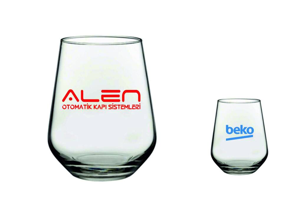 Cafe, restoran, dernekler, kahvehaneler vb, yerler için özel olarak üretilen logo baskılı su bardağı serimiz paşabahçe marka bardaklar kullanılarak üretilmektedir.
