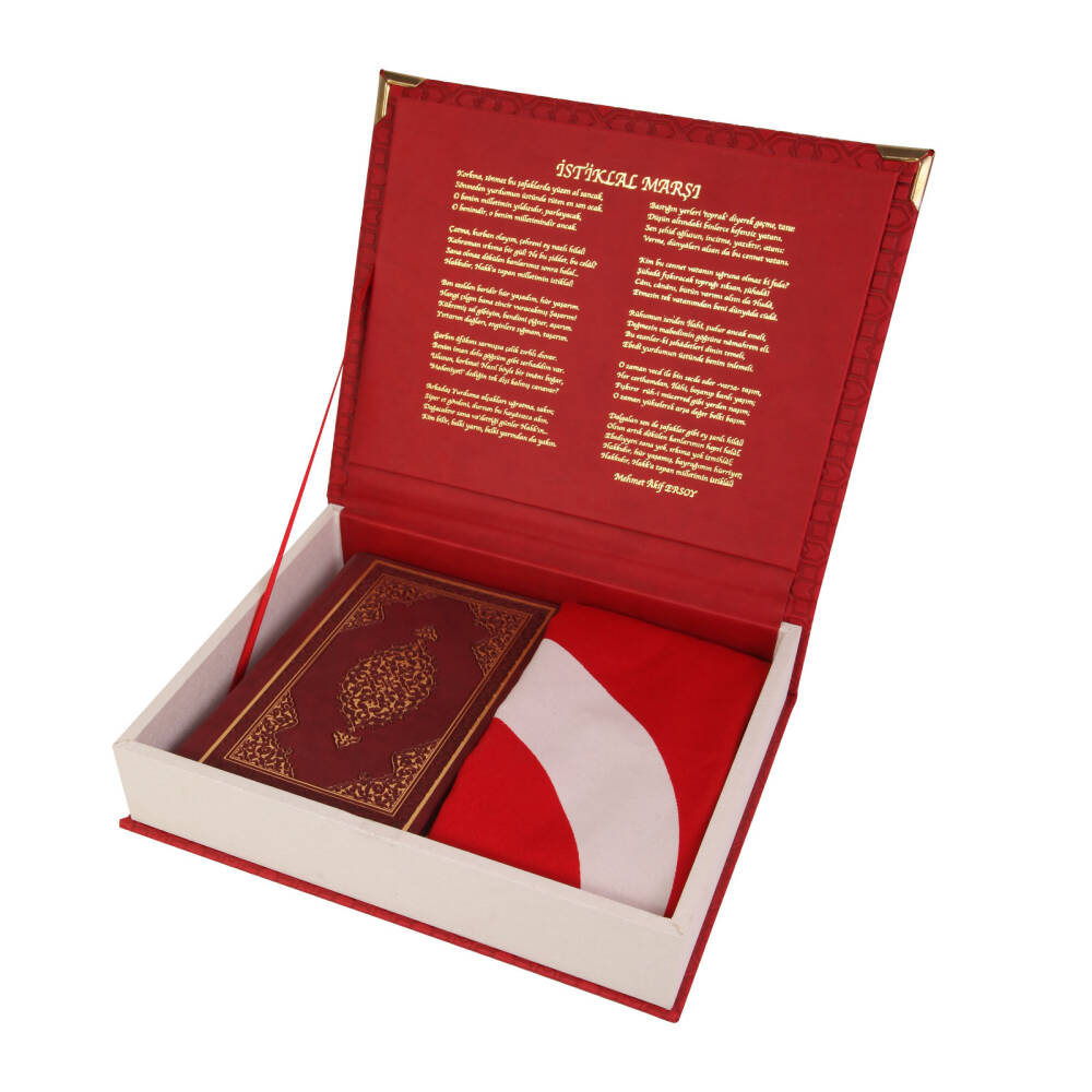 *Kuran-ı Kerim *Bayrak 50 x 75 cm. Alpaga Kumaş *Termo Deri Kaplama *Baskı: Süblimasyon Metal