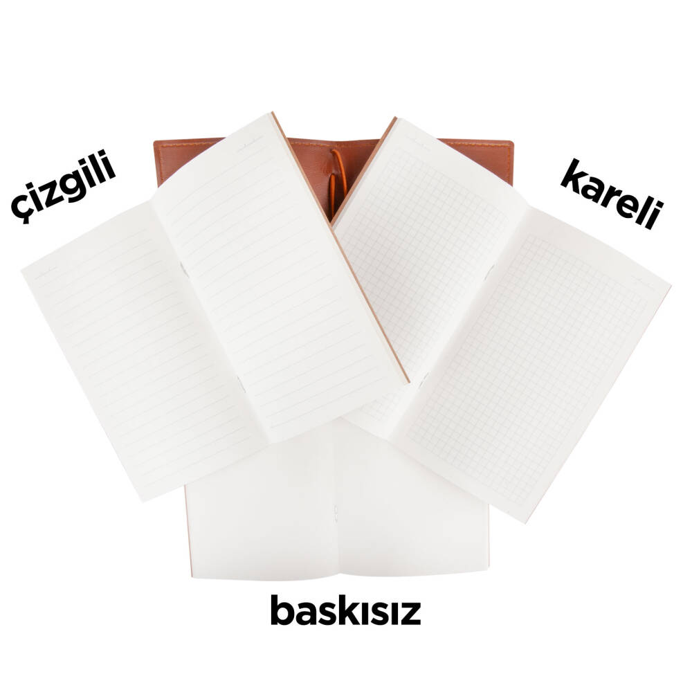 *11,5 x 20 cm *Termo Deri *Lastikli Kapak *Yuvarlak Köşe *İç Blok *64 sayfa Çizgili *64 sayfa Kareli *64 sayfa Baskısız *Ivory 70 gr. Kağıt *Baskı: Sıcak, Serigrafi, Lazer