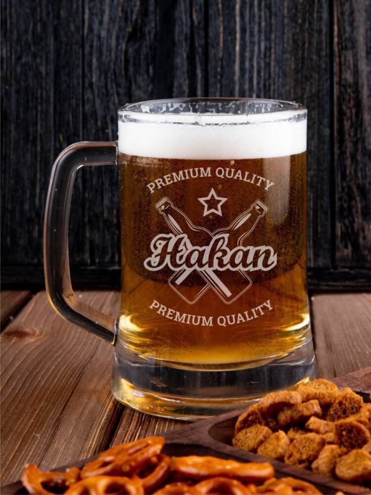 Özel motifli bira bardakları ile sevdiklerinizi mutlu edin. Paşabahçe pub model kulplu bira bardağı üzerine lazer kesme işleme ile kazıyarak yazı ve motifler işlenmektedir. Seçilecek olan motif, tarih, yazı gibi bütün bilgiler değişebilmektedir. Tamamen kişisel olarak üretilen bu ürün bulaşık makinasında yıkanabilir.