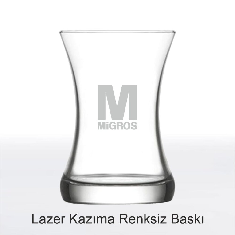 Paşabahçe’nin modern çizgilere sahip Misis çay bardağı, lazer kazıma teknolojisi ile işletmelere özel logolu hale getirilir. 160 cc geniş hacmi ve estetik formuyla kafeler, restoranlar, oteller ve kurumsal işletmeler tarafından sıklıkla tercih edilen bir bardaktır. Bardak üzerine firmanızın logosu lazer kazıma ile işlenerek şık, kalıcı ve profesyonel bir görünüm elde edilir.