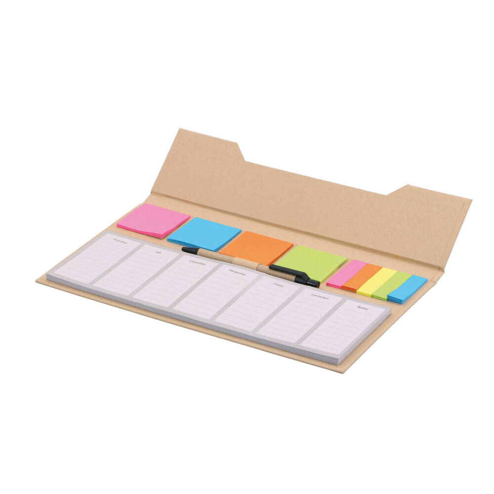 *Ölçü: 31 x 17 x 1,5 cm *İç: 50 Yaprak/ 80gr. Beyaz Kağıt *50 Yaprak 4 Renkli Yapışkanlı Not *50 Yaprak 5 Renkli Yapışkanlı Marker *Kalem Aksesuardır *Baskı: Serigrafi