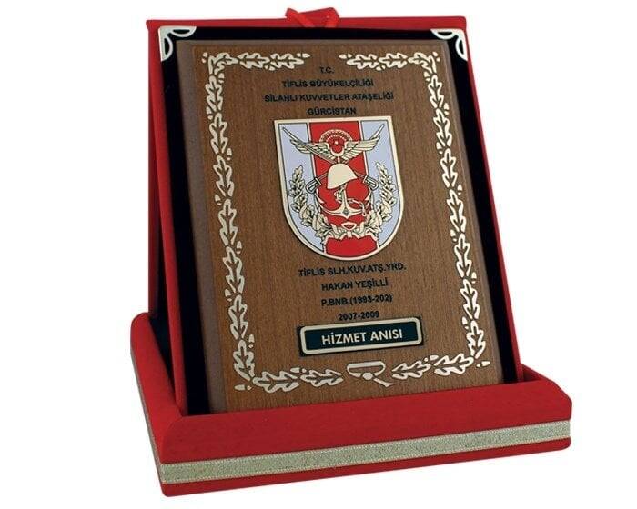 Silahlı Kuvvetler Ahşap Plaket Özel Üretim Süet Kutulu