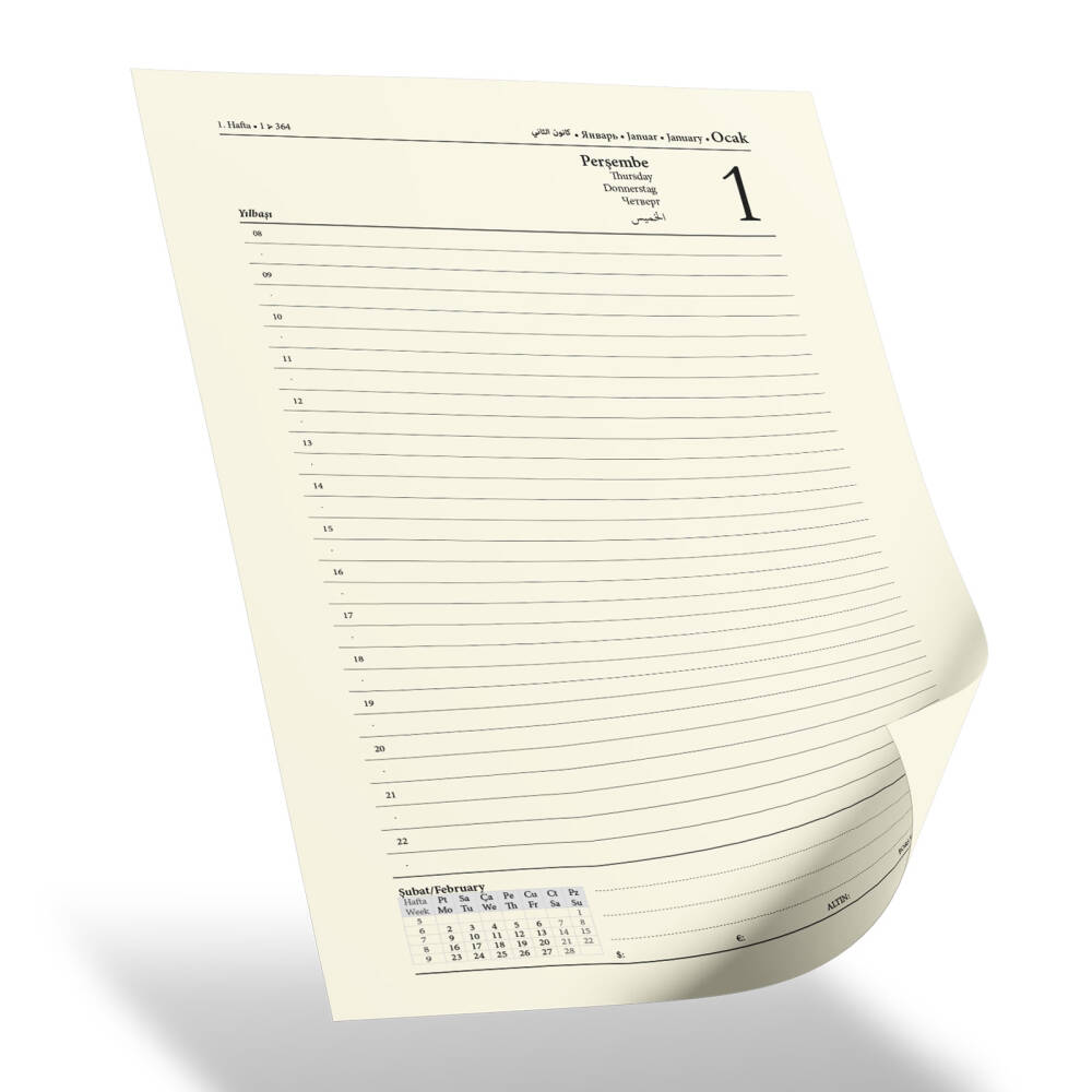 *20 x 28 cm *Günlük Ajanda *Termo Deri Kapak *Yuvarlak Köşe *İç Blok: *352 sayfa *Ivory 70 gr. Kağıt *Baskı: Sıcak, UV, Serigrafi